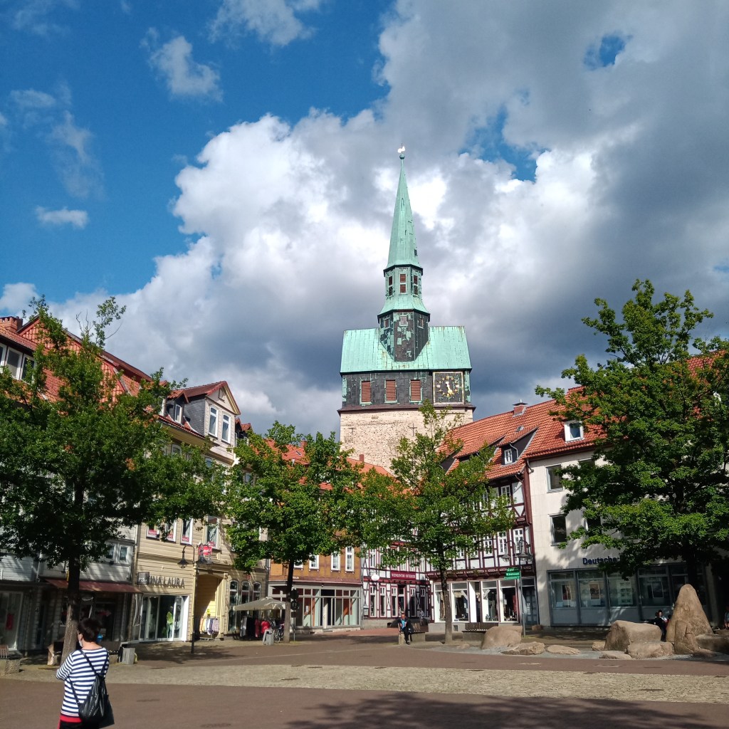 Am späten Nachmittag machen wir uns noch auf den Weg, um einen Blick in die Stadt zu werfen. Osterode selber ist wenig aufsehenerregend. Kleines Städtchen, das – wie zurzeit fast alle Innentstädte – deutlich in Coronahand ist. Überall Hinweise auf Maskenpflicht und Abstände. Aber die Außenplätze der Caffees sind bei dem sonnigen Wetter immerhin gut besucht.