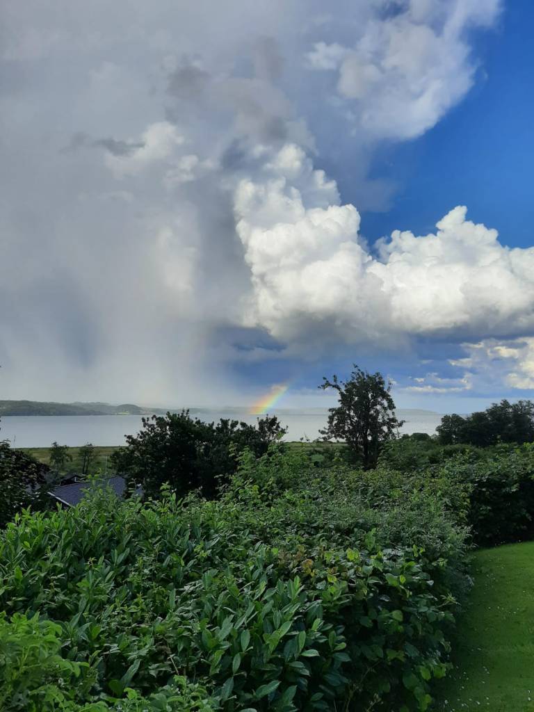 Trotzdem soll nicht der Eindruck entstehen, was wäre es ein totaler Reinfall gewesen. Das war es nämlich tatsächlich nicht. Und ein paar Dinge sind mir auch als sehr schön in Erinnerung geblieben. Zum Beispiel das nette kleine Restaurant im Hafen von Julesminde, in dem wir gleich mehrfach Essen waren. Oder das leckere Softeis, das wir in verschiedenen Varianten ausprobiert haben. Den unglaublich intensiven Regenbogen nachdem das Gewitter über den Fjord gezogen war. Und die traumhaften Sonnenuntergänge.
